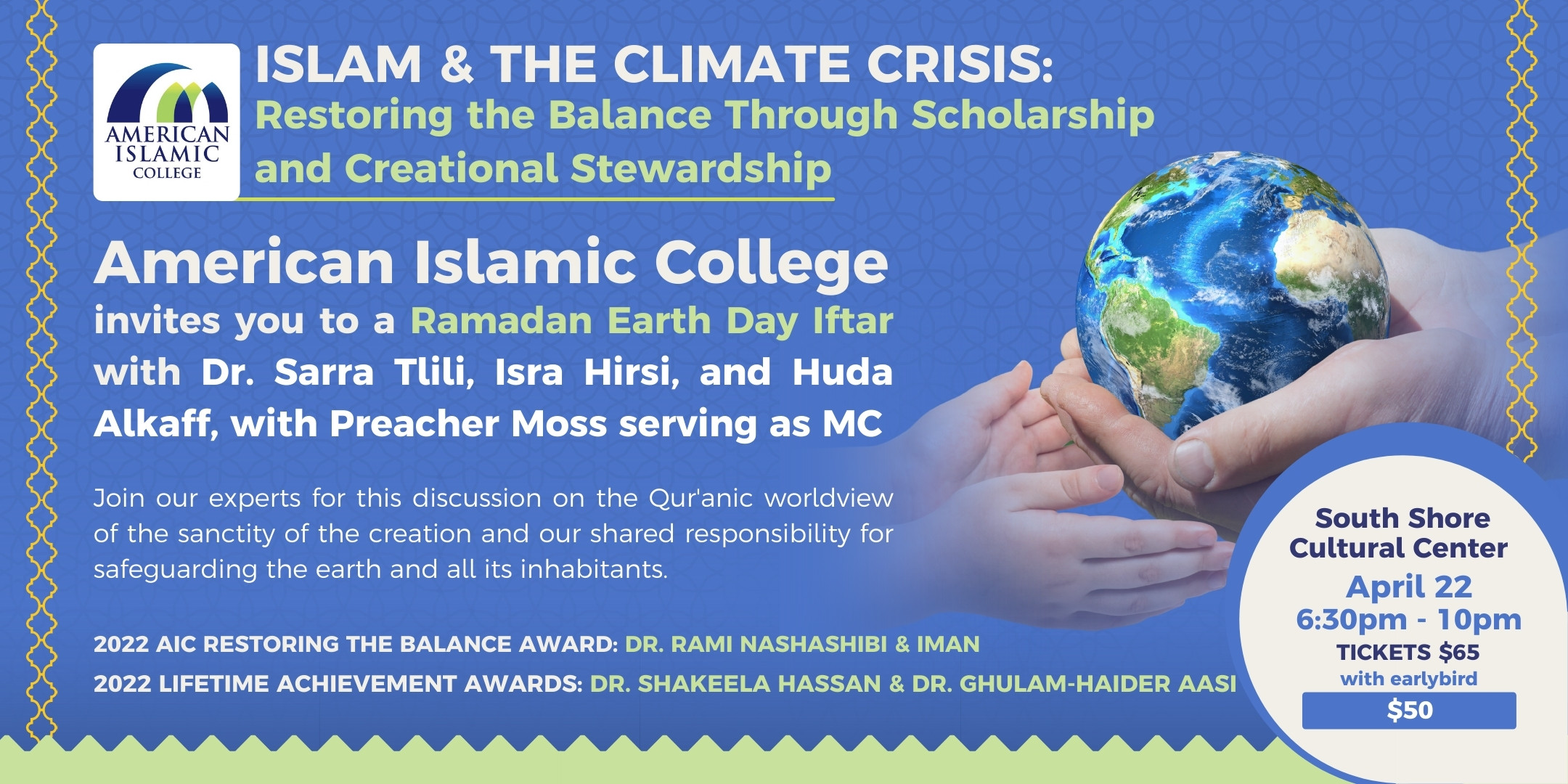Ramadan Earth Day Iftar with Dr. Sarra Tlili, Isra Hirsi, and Huda Alkaff, with Preacher Moss serving as MC